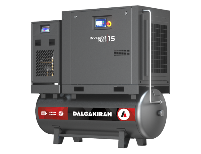 Серия Inversys Plus это стационарные маслонаполненные винтовые компрессоры, которые оборудованы микропроцессорной системой управления и контроля, имеют закрытый звукопоглощающий кожух. В винтовых компрессорах серии Inversys Plus конструктивно реализована прямая передача, когда мощность от электродвигателя передаётся к винтовому блоку через эластичную муфту, либо с использованием редуктора, а встроенный частотный преобразователь, позволяет регулировать рабочую скорость компрессора. За счёт этого достигается значительная экономия электроэнергии.