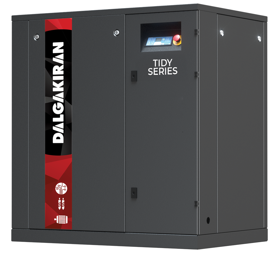 Серия TIDY это стационарные маслонаполненные винтовые компрессоры, которые оборудованы микропроцессорной системой управления и контроля, имеют закрытый звукопоглощающий кожух. В компрессорах реализована система привода с ременной передачей, электродвигатель с высоким КПД и эргономичный корпус.