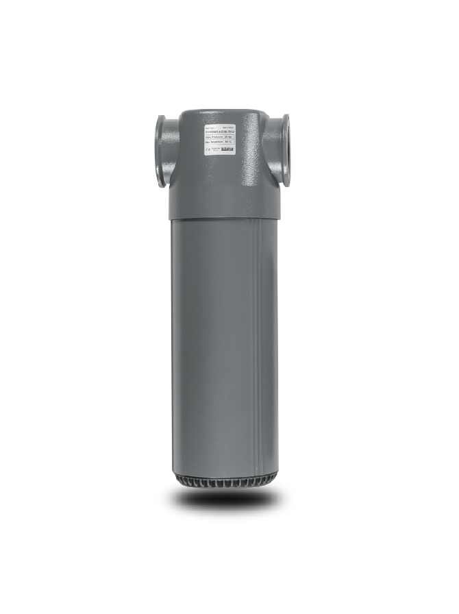 Наличие капельных фракций воды в сжатом воздухе, часто бывает недопустимо по условиям технологического процесса, например, процесс адсорбции в осушителе не будет эффективно проходить при наличии в воздухе капельной влаги и масла. Циклонный сепаратор предназначен для удаления воды и масла из сжатого воздуха. Благодаря конструкции корпуса, поток сжатого воздуха попадая в сепаратор закручивается, и за счет центробежных сил капельные фракции воды оседают на стенках корпуса и скатываются в нижнюю часть сепаратора и отводятся через конденсатоотводчика. Корпус сепаратора окрашен порошковым способом. Сепаратор серии G имеет пропускную способность до 37 м3/мин, оснащен поплавковым конденсатоотводчиком.