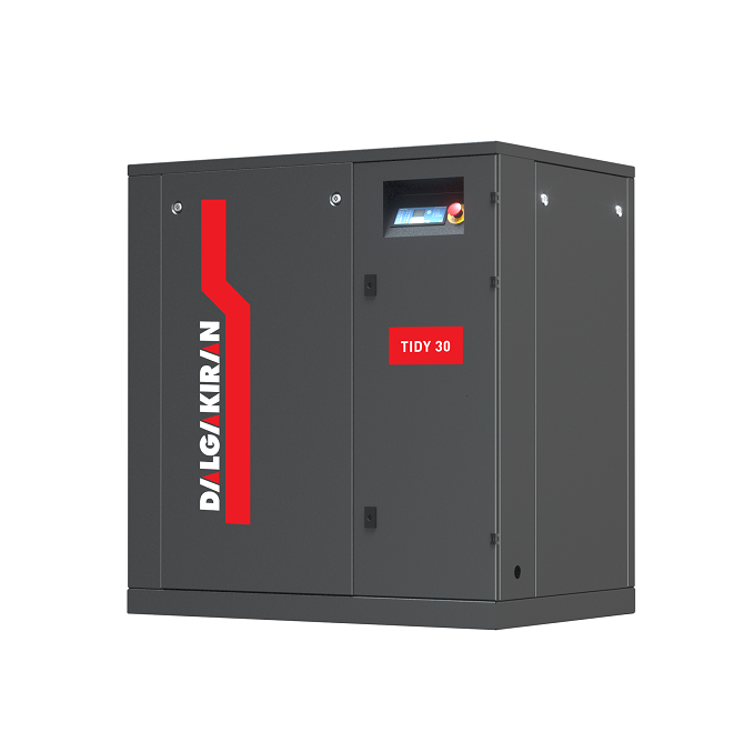 Серия TIDY это стационарные маслонаполненные винтовые компрессоры, которые оборудованы микропроцессорной системой управления и контроля, имеют закрытый звукопоглощающий кожух. В компрессорах реализована система привода с ременной передачей, электродвигатель с высоким КПД и эргономичный корпус.